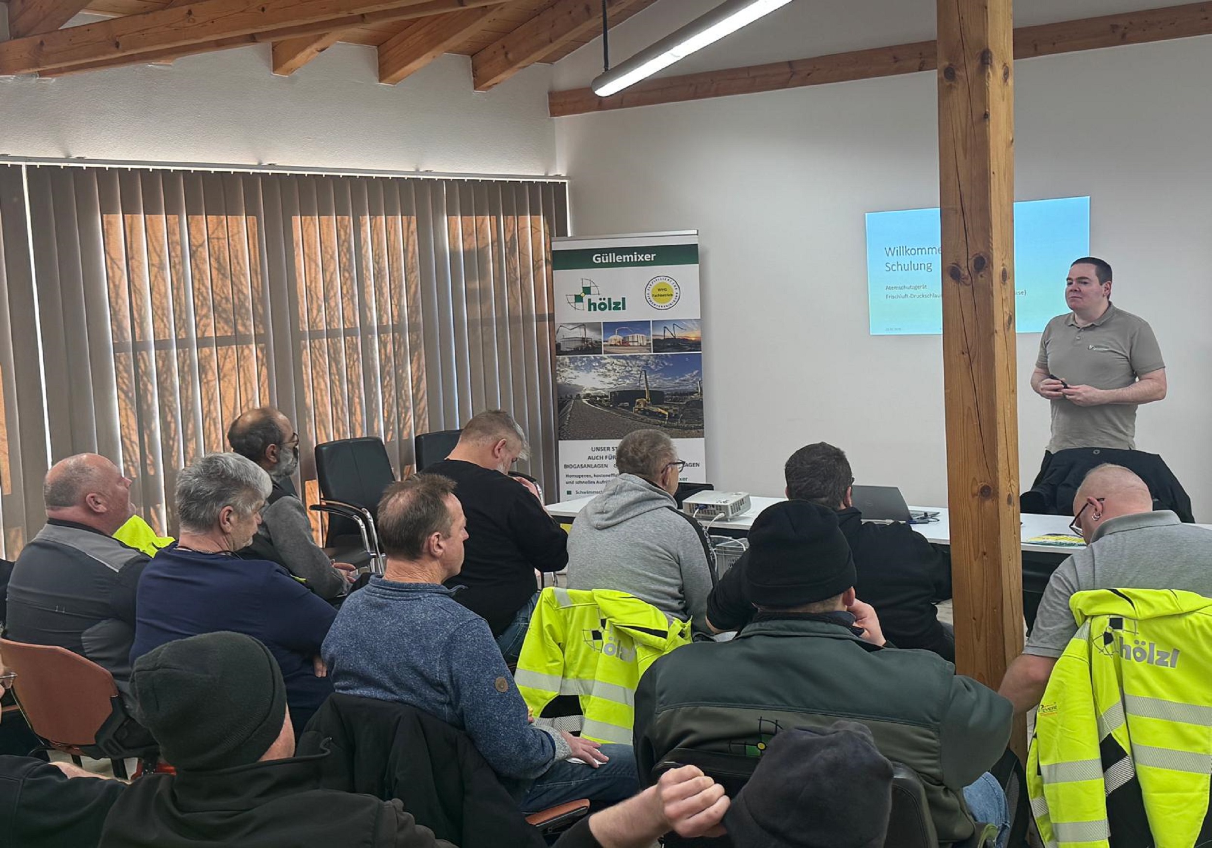 Für die Sicherheit und die fachgerechte Bedienung des Equipments, durch unsere Mitarbeiter, führen wir jährlich eine Sicherheitsunterweisung durch. Diese wichtige Schulung wird durch den Besuch der Berufsgenossenschaft und den jeweilig zuständigen Sicherheitsbeauftragten geleitet. Wichtiger Punkt: unsere hohen Sicherheitsstandards, zu denen nicht nur die Spezialausrüstung für unsere Mitarbeiter zählt, sondern auch Teile wie Gaswarnanlagen, Handnotsender, Funkfernsteuerungen für die komplette Maschinenbedienung und vieles mehr. Die jährliche Unterweisung ist somit lebensnotwendig für unser HÖLZL-TEAM.